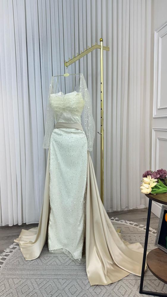 - اللون: أبيض مع تفاصيل لامعة وتدخيلة بيج