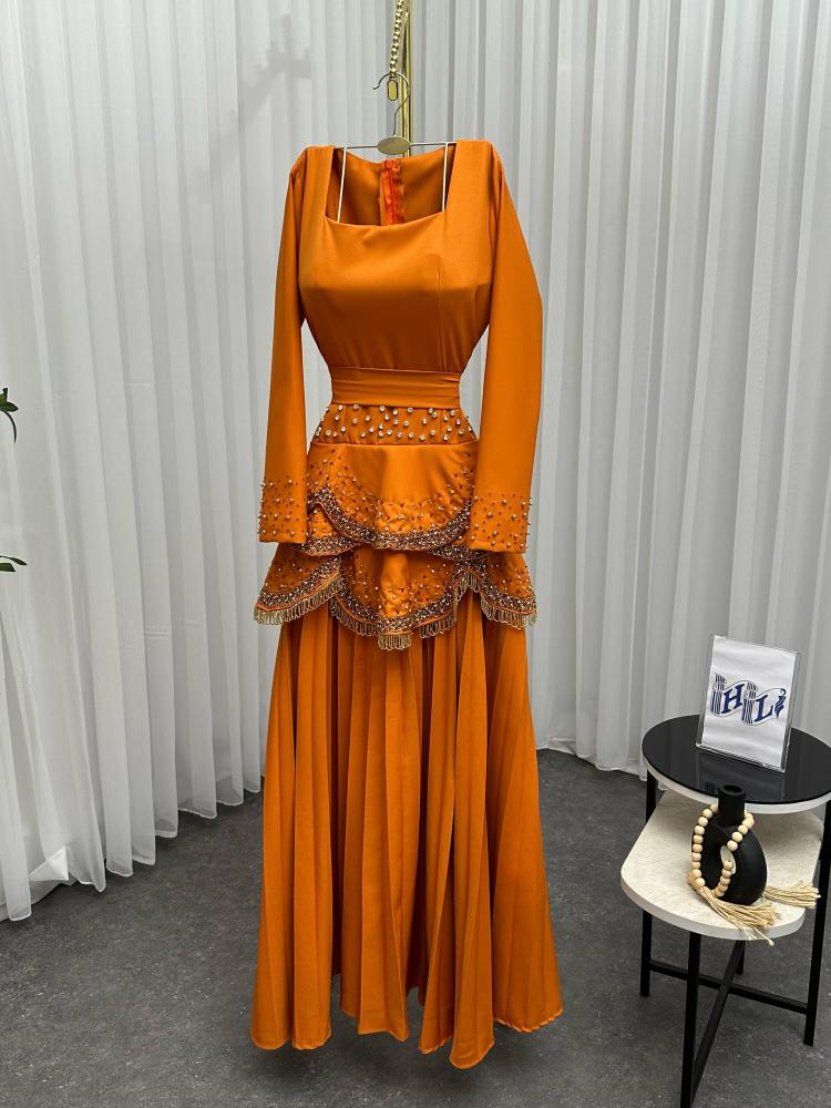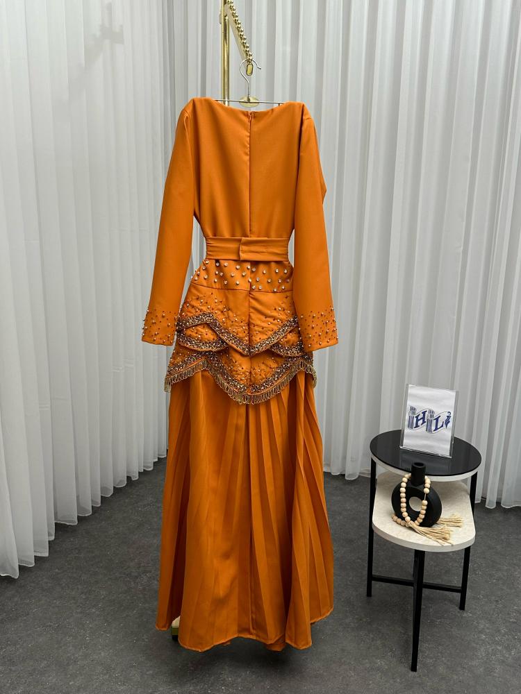 فستان اورانج من متجر صبا يأتي بتصميم أنيق مزين بكسرات وحزام خصر يبرز جمال القوام ويضيف لمسة أنثوية كما يتميز بلون برتقالي جذاب مع تطريز فاخر يمنحك إطلالة مميزة تناسب السهرات والمناسبات الخاصة ويتوفر بمقاسات متعددة من S حتى 3XL لتناسب جميع الأجسام.