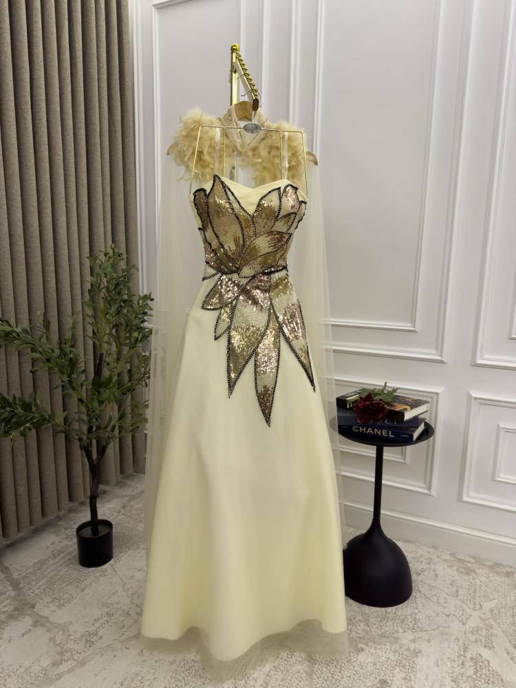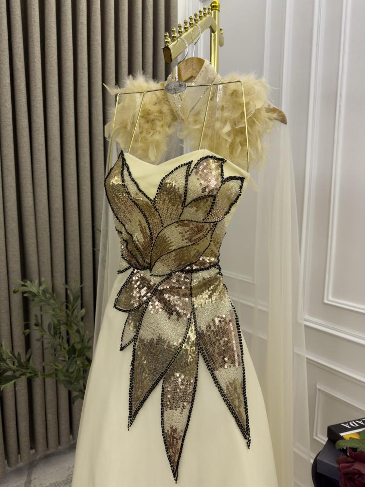 مواصفات فستان ذهبي ترتر